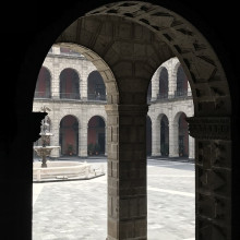 Der Hauptinnenhof hinter dem zentralen Eingang am Zócalo ist von arkadengesäumten dreistöckigen Gebäuden im Stil der Renaissance umgeben. In der Mitte befindet sich ein Springbrunnen mit einer Pegasus-Figur. Der Hof wird für offizielle Veranstaltungen, für Empfänge von Würdenträgern und Botschaftern sowie für Bürgerzeremonien genutzt.